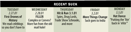 ![]() Finally, there's the question of the uselessness of TV critics. On this point, the critics, whose job description to a large extent involves describing to us things that we've already seen, would appear most vulnerable. But consider the degree to which we (at least we in the preferred demographics) live in the era of No Free Time, telecommuting, spending off-hours on career-oriented socializing, and taking on freelance assignments to the point where we really can declare that time is money. How much does it cost you, really, to watch an hour of TV an hour that you could have spent taking work away from somebody else, kissing your boss's ass, doing some other lucrative task? If multi-starred movie picks, or the even more dubious "What's on the Web" guides, can qualify as service journalism, what debt do we owe to the writers who deliver us from wasted appointment viewing? That's why we'll continue to support our local TV critics, guffaw right along with their assorted brain farts, and be grateful for their misguidance, even as the mullahs of American civilization seek to topple these giants of popular culture.