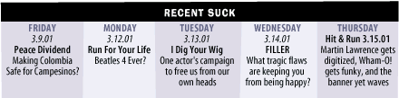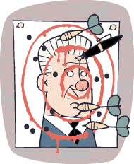 ![]() But before the two detectives can piece things together, startling new evidence appears. Meat and eggs are found buried in the yard of former President Clinton's home in Chappaqua, New York an ancient Emerald Isle curse on one's enemies. Clearly, the criminal the media have begun to call "The Banshee Killer" is planning a diabolical finale against that arch-foe of human decency, the half-Irish, one-sixteenth Cherokee Bill Clinton. But this time, the murderer has slipped up, accidentally leaving a clue at the scene: a shovel with a Fox News Channel monogram. This piece of evidence leads our heroes to a suspect who has been right under their noses: TV Talk host Bill O'Reilly, a multimillionaire Irish American whose bottomless reserves of self-pity were bound to drive him insane at some point. But when they bust O'Reilly, he laughs defiantly, and the story takes a dark new turn: The reason Cassius hasn't been able to figure out the killer's mind is that O'Reilly hasn't been working alone. In fact, these killings are the work of an Irish Catholic fringe group so fearsome and unyielding even the IRA steers clear of them the Clinton-hating Irish pundits. They're all in on it: Peggy Noonan, Tim Russert, Michael Kelly, Chris Matthews, all of them. But while most of the gang is rounded up, mastermind Maureen Dowd slips past a curtain of DC cops and, in a bravura action scene, penetrates the army of New York state troopers and Secret Service agents guarding Bill Clinton. Creating a melee of accidental shooting among the cops, she escapes with the ex-president held at gunpoint.