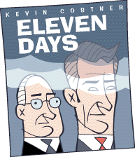 ELEVEN DAYS George W. Bush: Kevin Costner Colin Powell: Usher The Hainan island incident, an international crisis that brought the then United States and the then People's Republic of China to the brink of nuclear war 37 years ago, was the crucial, heart-stopping foreign policy test of the second Bush administration. As Chinese communists imprisoned a US Navy air crew and the two nations squared off in the western Pacific, Americans crammed into fallout shelters and prayed that their "Star Wars" missile defense shield would hold up. People around the globe were gripped by mortal panic. The world held its breath. Eleven Days recaptures these tense moments of the Second Cold War with remarkable fidelity and the panache of an old-fashioned international thriller. Some historians have objected that the "George W. Bush" character played by Kevin Costner was in reality a minor figure in the crisis, and was not present at any of the important meetings depicted in the film. Maybe so, but only the ever-youthful Costner, a Hollywood perennial whose films have lost trillions of dollars over the years, could have given the film such singular focus, with a likable everyman as the audience representative.
