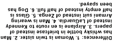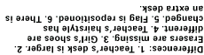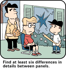 that asks the sharp-eyed reader to "Find at least six differences in details between panels."